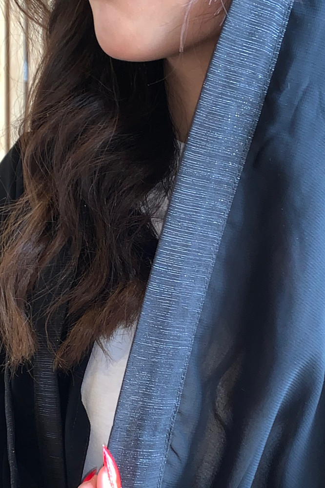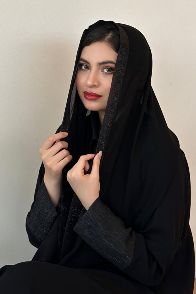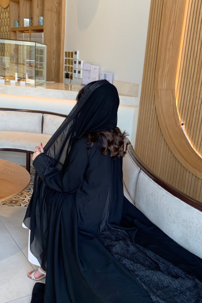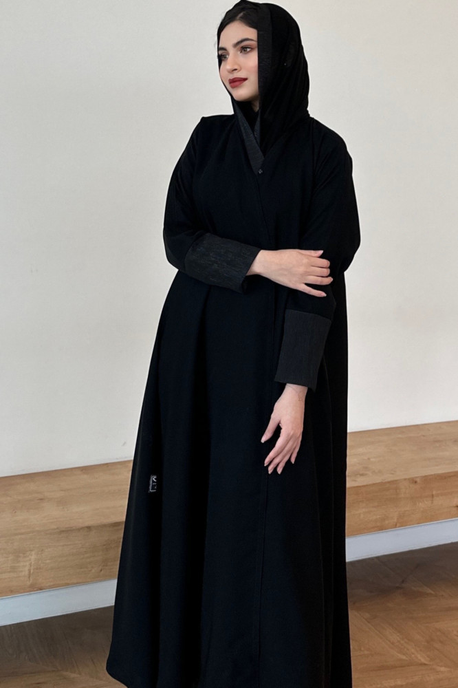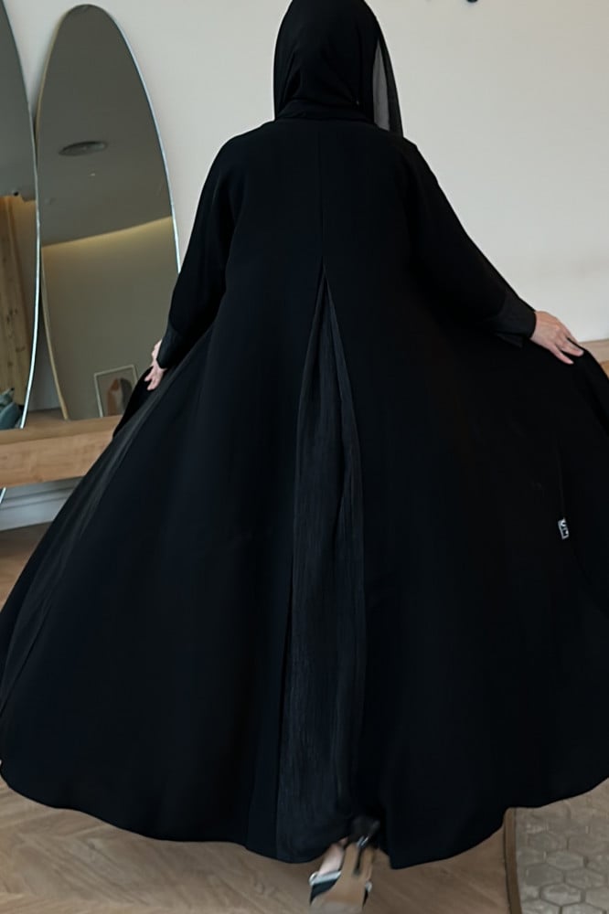 عبايه نص كلوش القماش كريب مع شيفون مبطن بلمعه