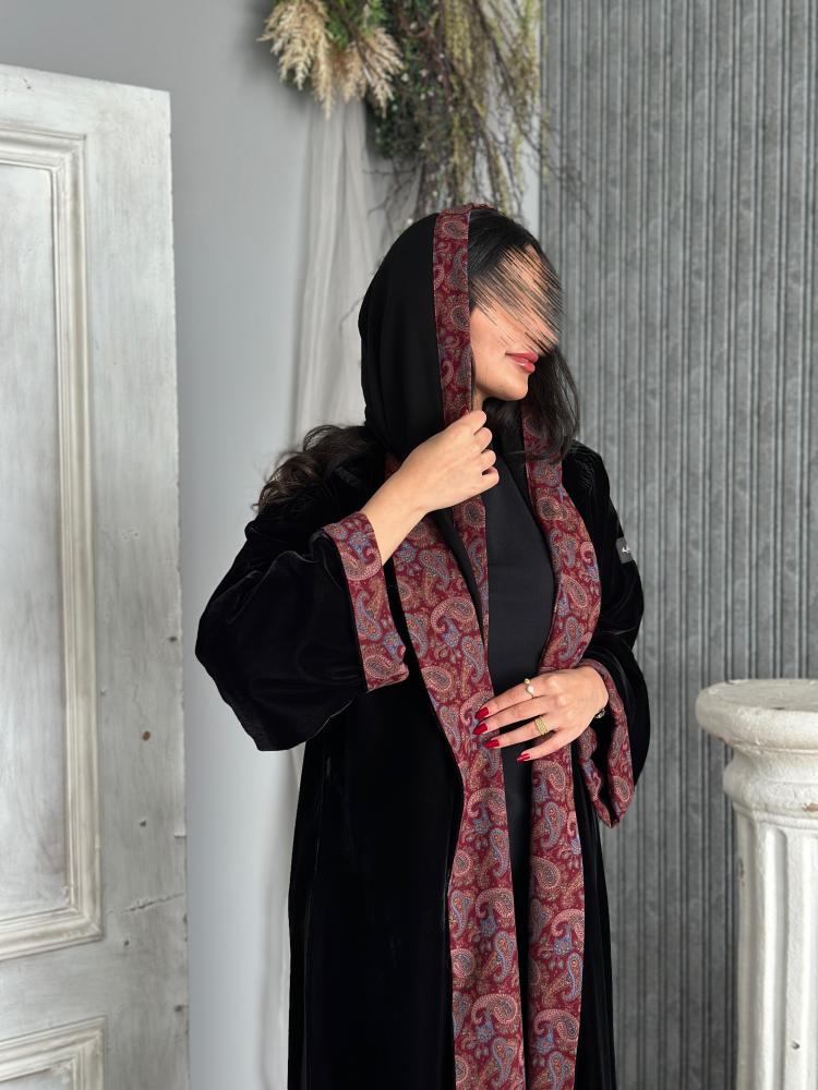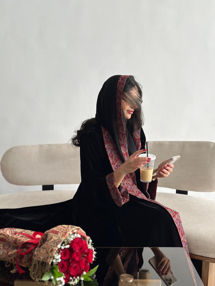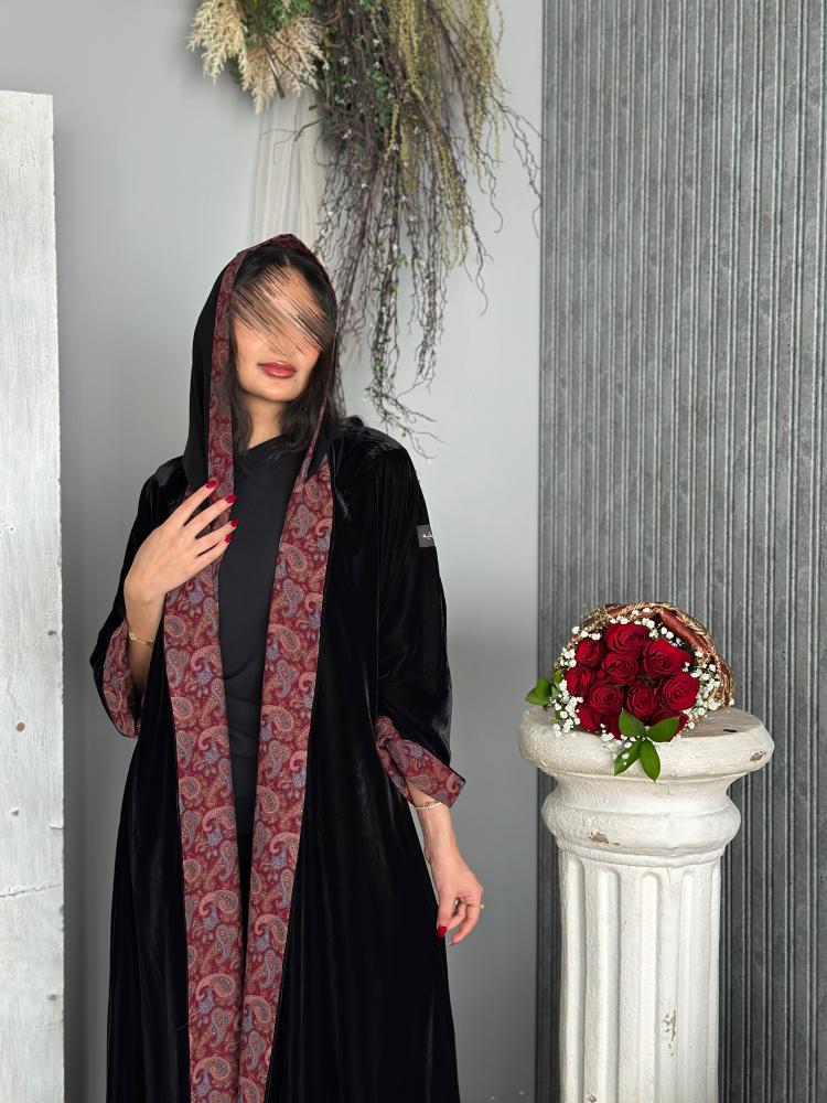 عباية القصه نص كلوش التدخيله من قماش الكشميري مع طرحه طرف كشميري القماش بامكانك اختيار مخمل او كريب ملكي